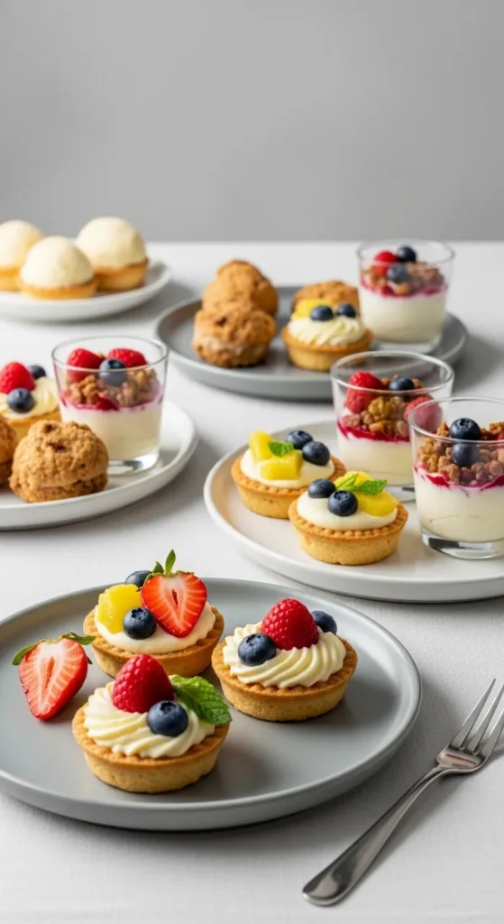 I serve desserts in mini cups or bite-sized pieces. Smaller portions let guests sample multiple treats without going overboard. You control calories without policing anyone’s plate.