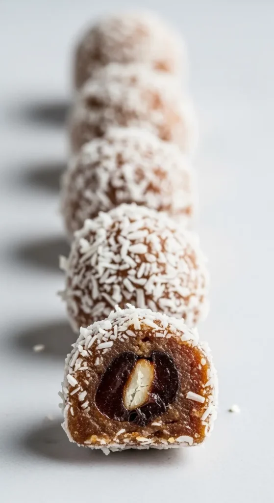 I pulse dates, shredded coconut, and almonds in a food processor until sticky. I roll the mixture into balls and dust them with cocoa powder. No baking required.