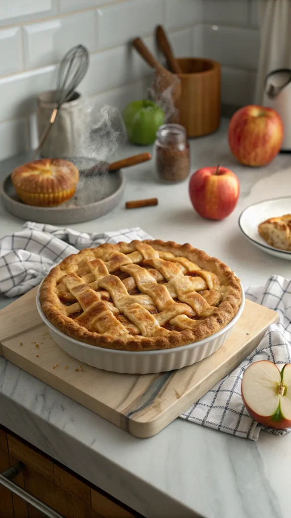 American apple pie usually wears a full top crust or a lattice. Full crust traps moisture and feels classic. Lattice allows steam to escape and adds visual appeal. Both work beautifully. I choose based on mood, not rules.