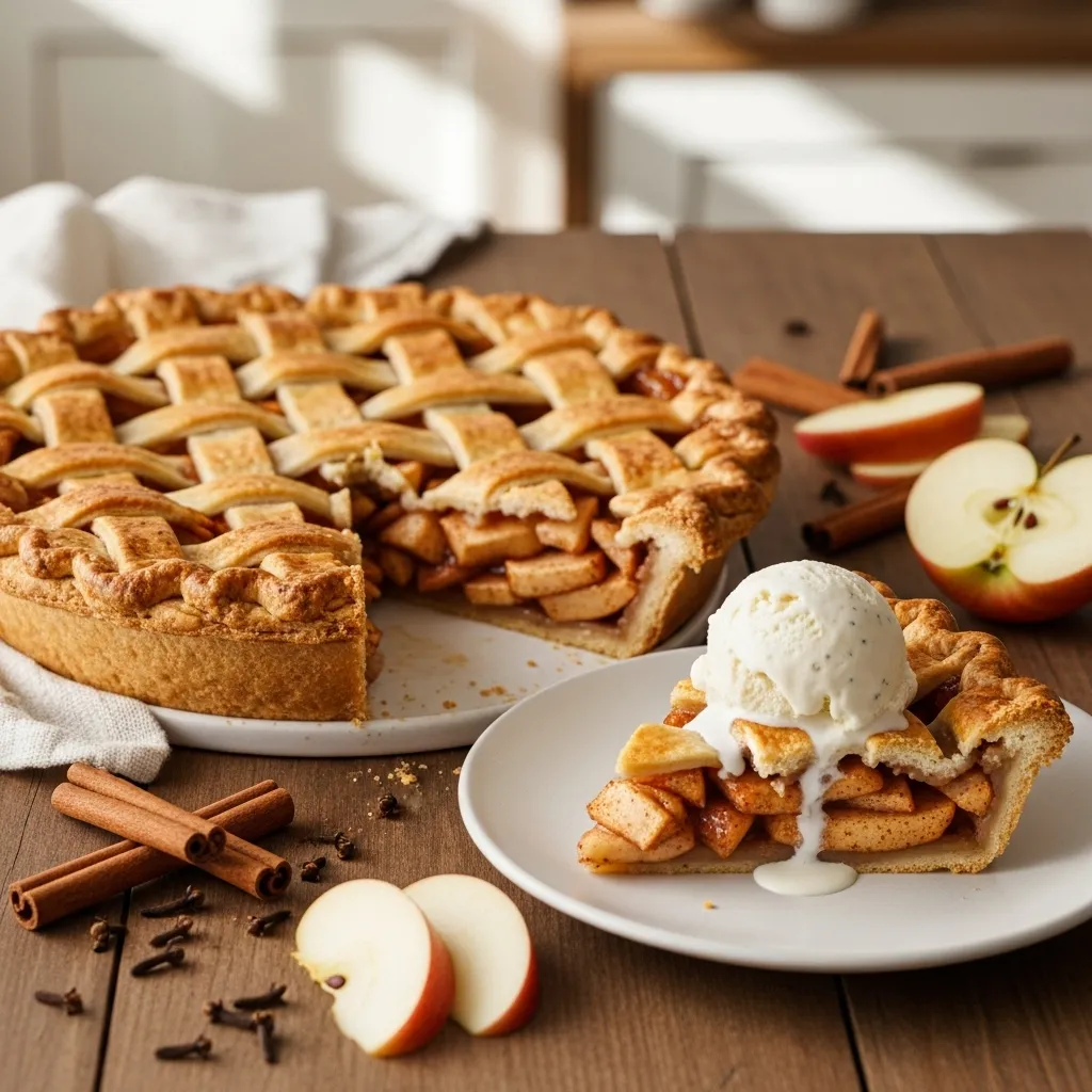American apple pie usually wears a full top crust or a lattice. Full crust traps moisture and feels classic. Lattice allows steam to escape and adds visual appeal. Both work beautifully. I choose based on mood, not rules.