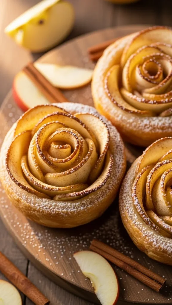 These roses deliver flaky pastry on the outside with tender apples inside. The edges crisp beautifully while the center stays soft. That contrast makes each bite interesting instead of flat. Flavor-wise, they taste warm, lightly sweet, and comforting. Cinnamon doesn’t overpower the apples, and the pastry adds richness without heaviness. Would I serve these with coffee or dessert wine? Easily both.
