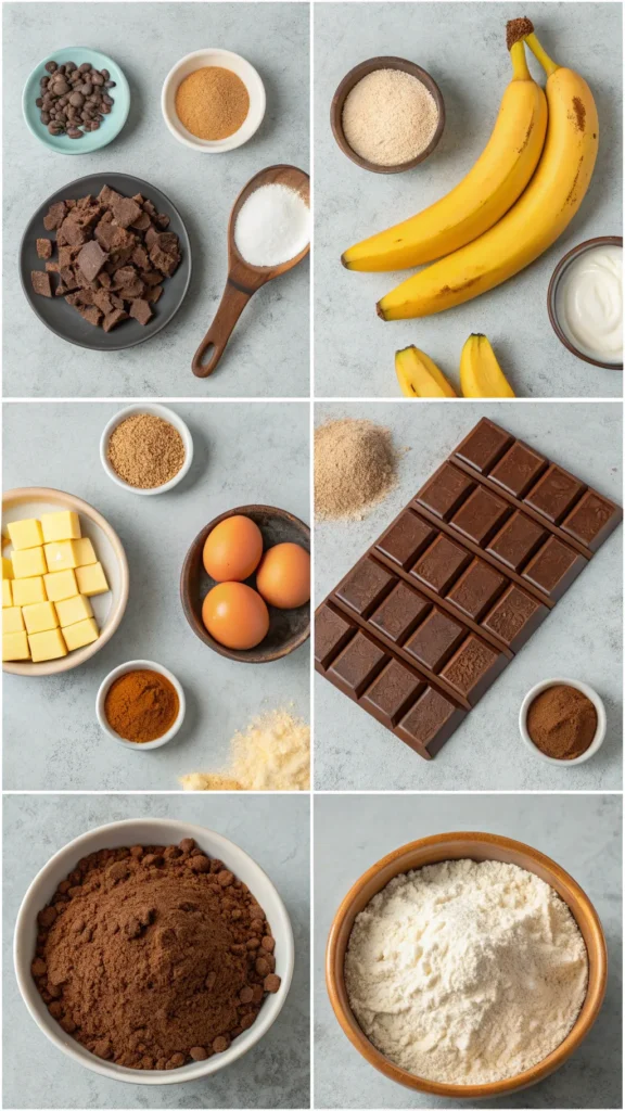 This recipe keeps the ingredient list clean and approachable. Every ingredient serves a purpose, and nothing feels unnecessary or decorative. The bananas carry moisture, the chocolate brings richness, and the basics hold everything together.