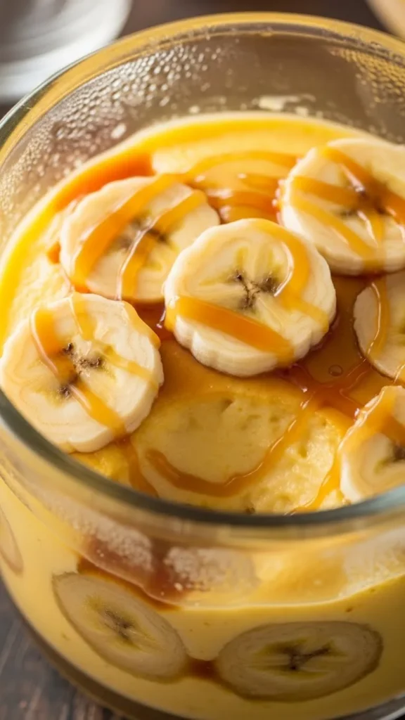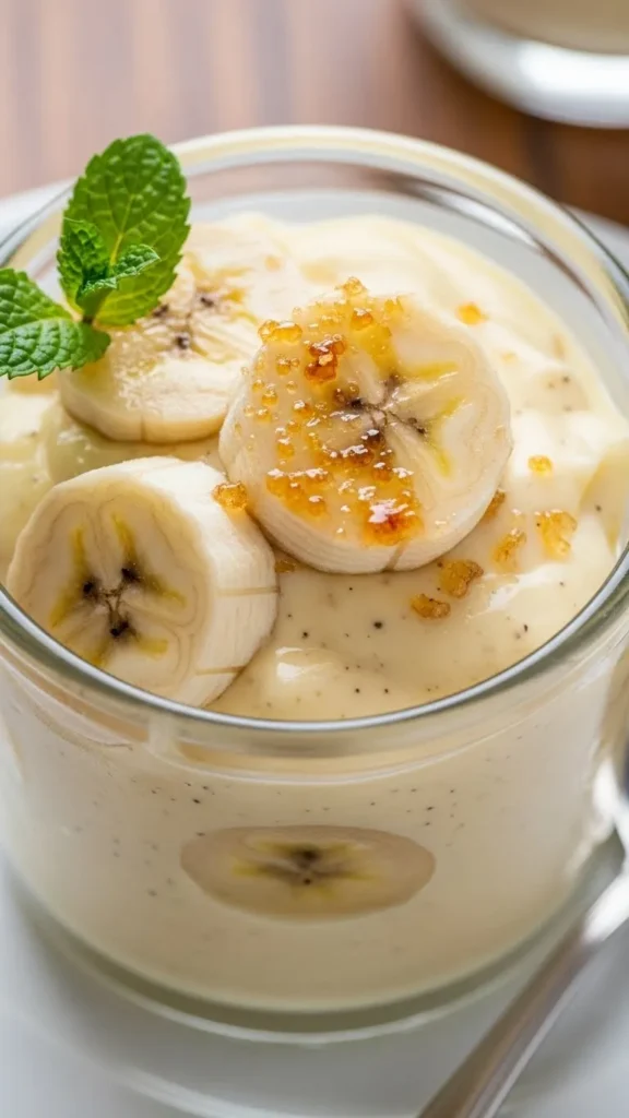 Garnish with extra banana slices or a dollop of whipped cream before serving. The result is a creamy, rich custard with naturally sweet bananas in every spoonful.