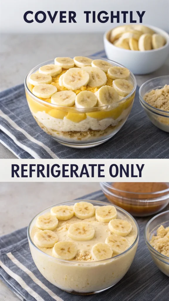 Bananas matter more than people think. You want ripe bananas with brown spots, not green and not fully mushy. Ripe bananas bring sweetness and flavor without turning watery. I always slice bananas right before layering. Let them sit too long and they start browning, which isn’t cute in pudding.