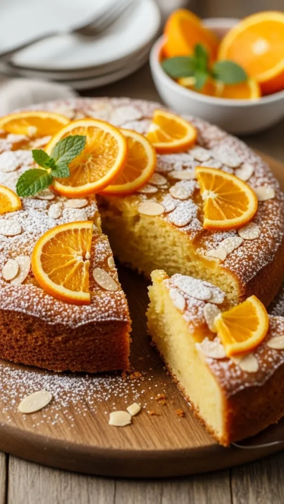 A simple orange glaze adds shine and extra citrus flavor. Sliced almonds on top add texture and visual appeal. You can also dust the cake with powdered sugar for a minimal finish. Keep toppings light so they enhance rather than overpower the almond and orange flavors.