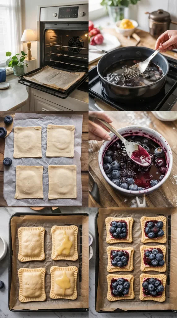 Yes, now. Not later. Preheating matters, and future-you will be grateful when everything bakes evenly. - Make the blueberry filling.