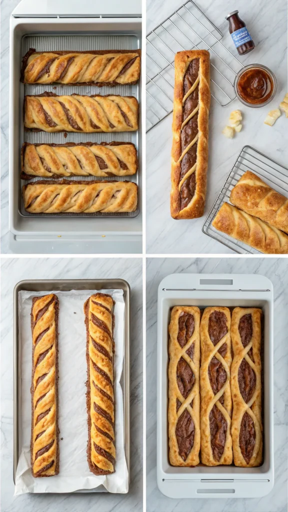 The braid looks complex, but the process feels surprisingly calm once you start. You spread the filling down the center, cut strips on the sides, and fold them over alternately. That’s when the magic happens. I like taking my time with this step. It feels more like assembling than baking. Watching the braid puff and turn golden in the oven is incredibly satisfying.
