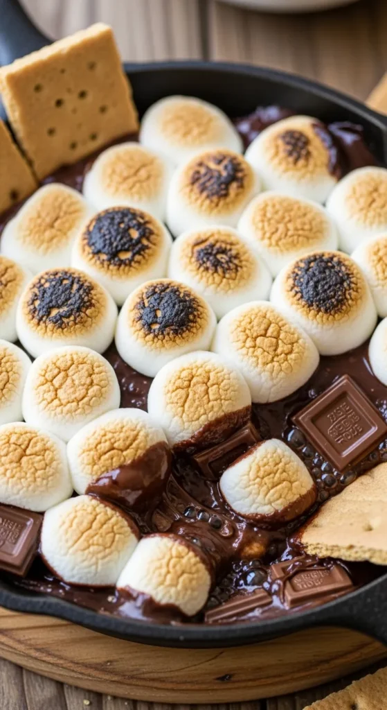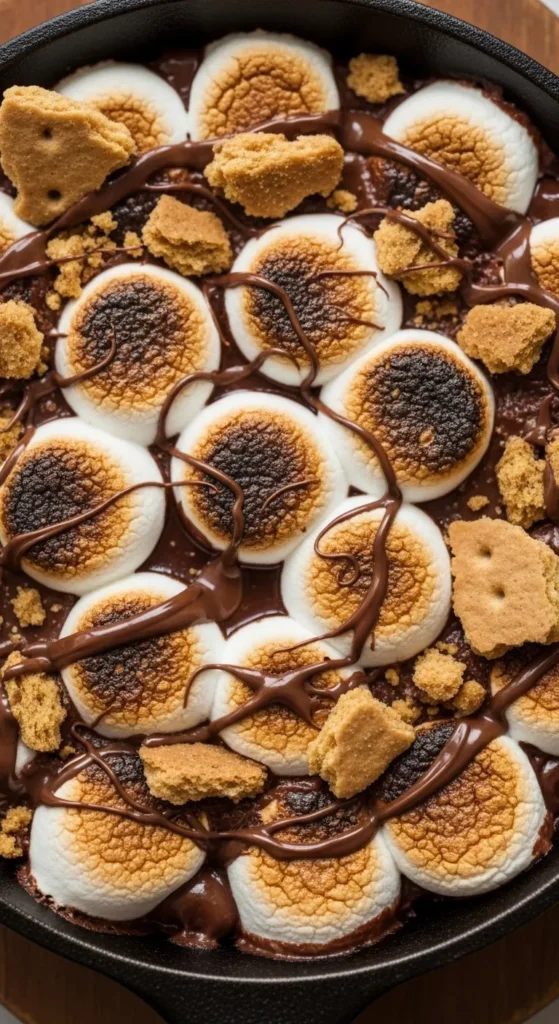 - The Final Reveal: Pull the skillet out when the tops are a deep, toasted brown and the marshmallows have puffed up. Let it sit for about 2 minutes—the residual heat from the pan will finish melting the chocolate underneath.