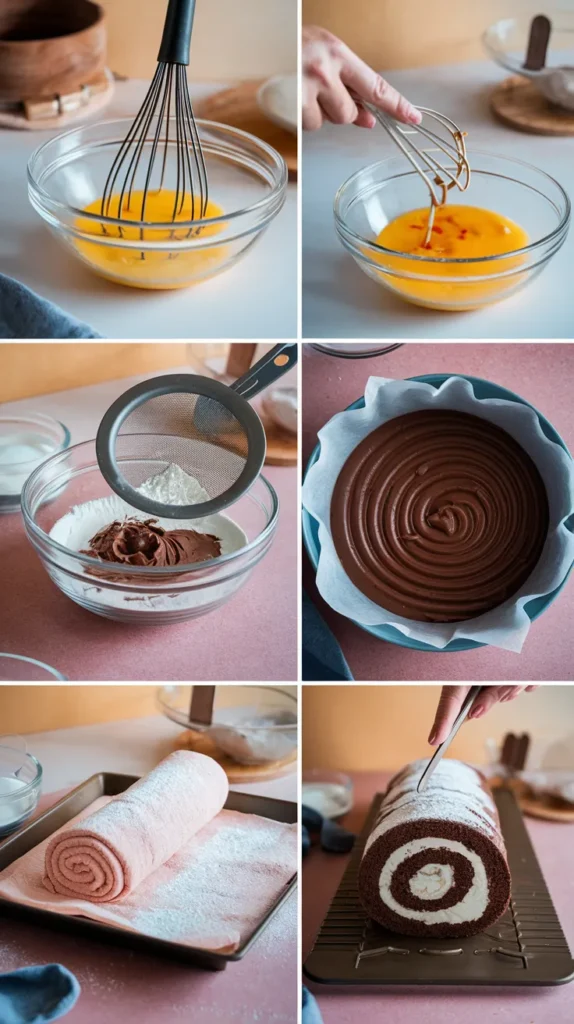 Whisk them together until pale, thick, and fluffy. This takes about 4–5 minutes. You want volume this is what keeps the cake soft and rollable. - Add vanilla and gently mix.