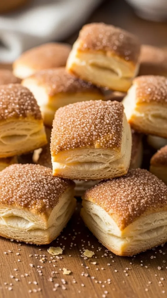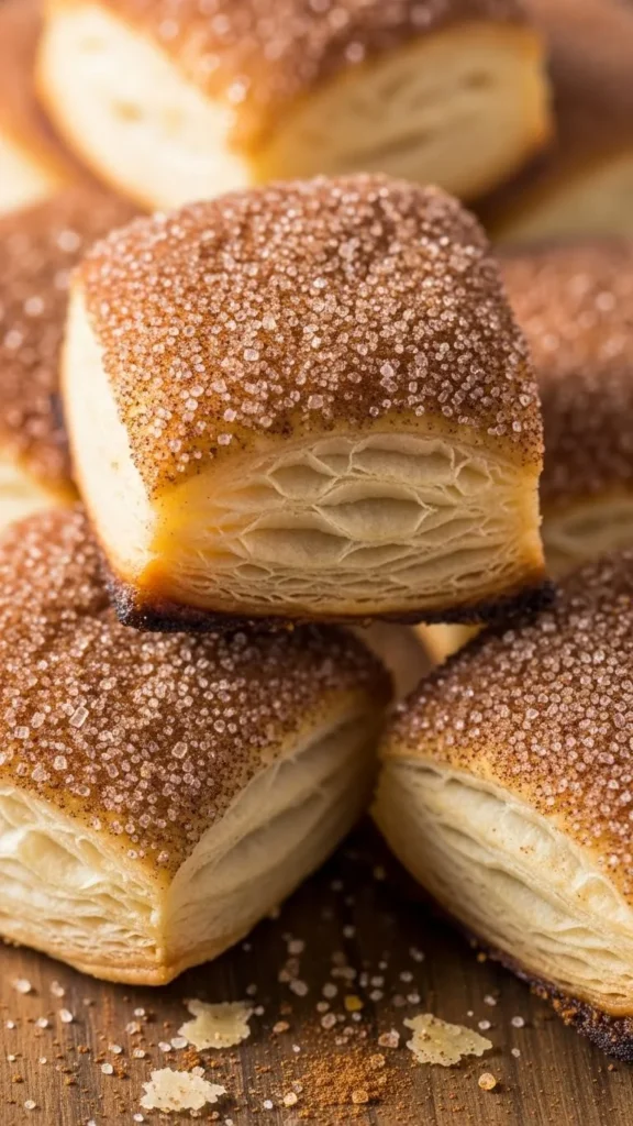 The outside should feel crisp with visible layers. The inside should feel light and airy, not doughy. Cinnamon sugar should caramelize slightly, not burn. When you hear a light crunch, you know they’re ready.