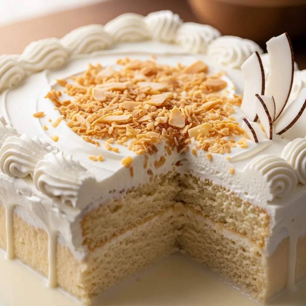 Coconut flavor shines best when the cake stays light and airy. Dense cakes struggle once the milk hits them, and coconut milk doesn’t forgive mistakes easily. I always use a sponge-style cake for this version. It absorbs liquid evenly and keeps its structure. Ever seen a cake collapse under too much milk? That’s what we avoid here.