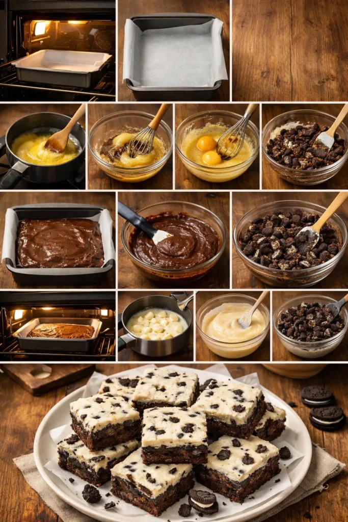 These brownies are thick, fudgy, loaded with Oreos, and topped with a creamy cookies ’n cream layer that basically whispers, “You deserve this.” And the best part? You don’t need to be a baking wizard or own fancy equipment. If you can stir things in a bowl and resist eating all the Oreos straight from the package (barely), you’re good.