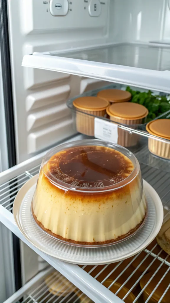 Vanilla flan belongs in the fridge. Custard demands it. I keep it tightly covered to protect flavor and texture. Flan absorbs smells easily, and that’s not a fun surprise :/.