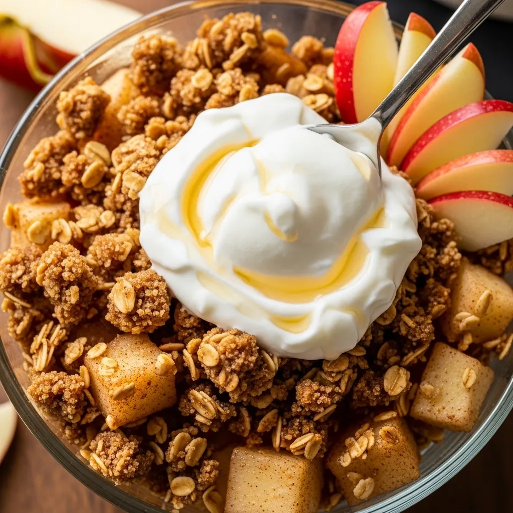 Texture makes or breaks apple crisp. This one nails the contrast. You get tender apples underneath and a crunchy topping on top, with no soggy layer in between. Greek yogurt helps the filling stay thick and creamy instead of watery. That alone makes this version worth baking again.