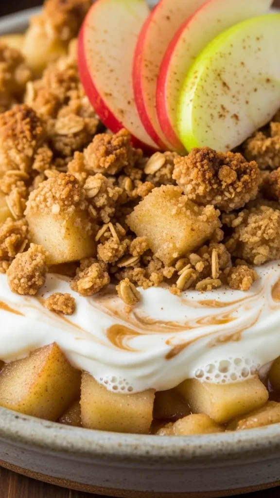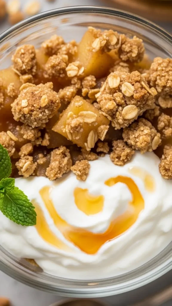 Greek yogurt apple crisp works in more situations than you’d expect. I’ve served it warm, cold, plain, and dressed up. It always works. You can keep it simple or make it feel fancy depending on the moment.