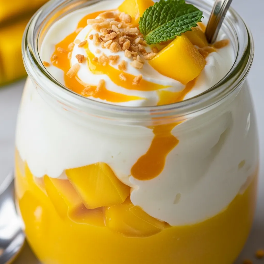 Before serving, optionally top with fresh mango slices, mint leaves, or a sprinkle of chopped nuts. Serve chilled for the best flavor and texture.