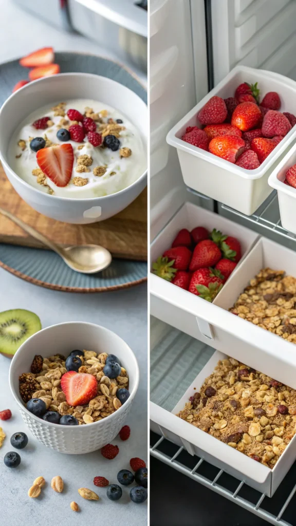 Greek yogurt parfaits work well for short-term prep if you plan smart. The key is keeping textures separate until serving time. Nobody wants soggy granola. I usually prep components ahead and assemble when ready to eat. It keeps everything fresh.