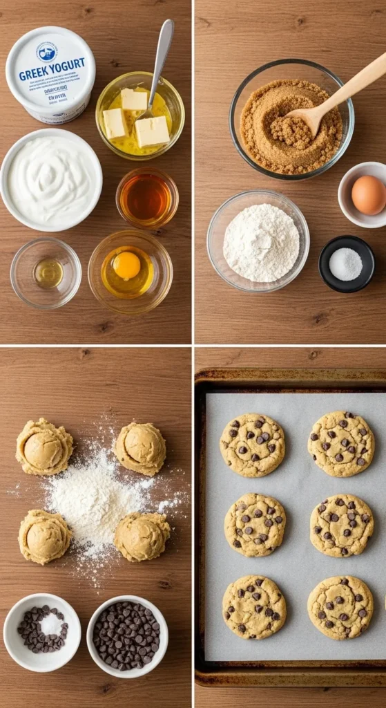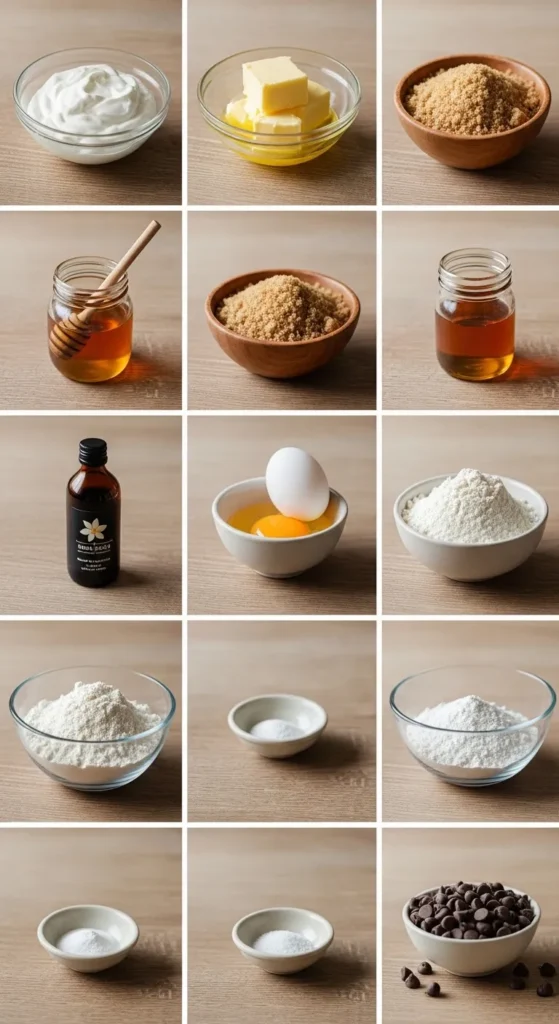 - Greek yogurt (plain) – The star of the show. Thick and creamy = better cookies.