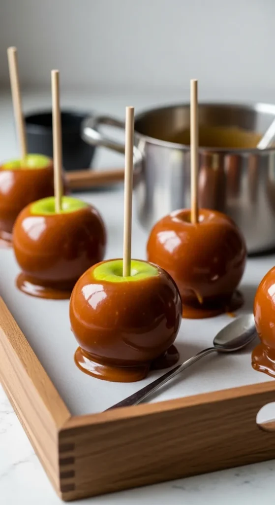Let the apples sit at room temperature until firm. You can speed things up in the fridge for about 20–30 minutes. Once set, they’re ready to bite into. Or admire. Or photograph like a proud parent.