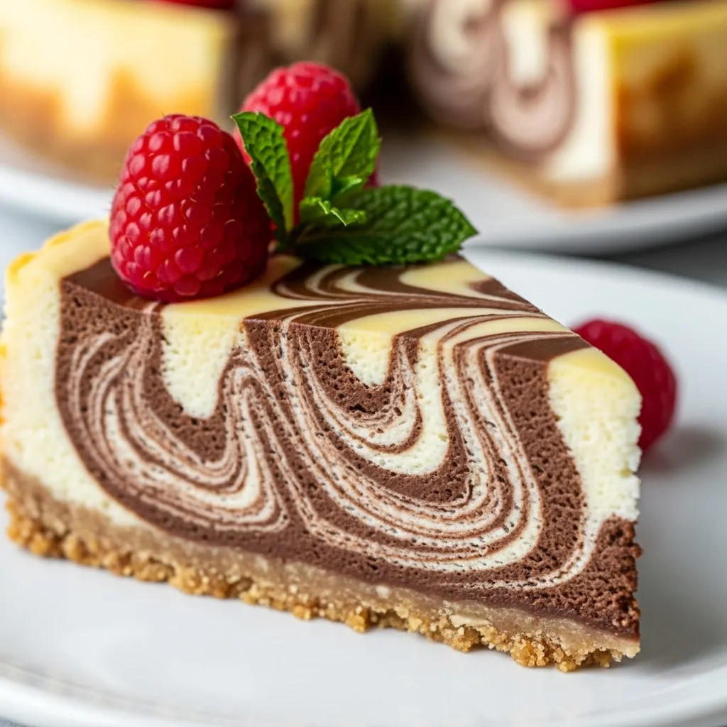 Bake at 325°F (160°C) for 50–60 minutes until the edges are set and the center slightly jiggles. Remove from the oven and let it cool at room temperature. Chill in the refrigerator for at least 4–6 hours, preferably overnight, to allow the flavors to meld and the cheesecake to firm up. Proper chilling is essential for clean slices and a creamy texture. It also allows the marble pattern to set beautifully.