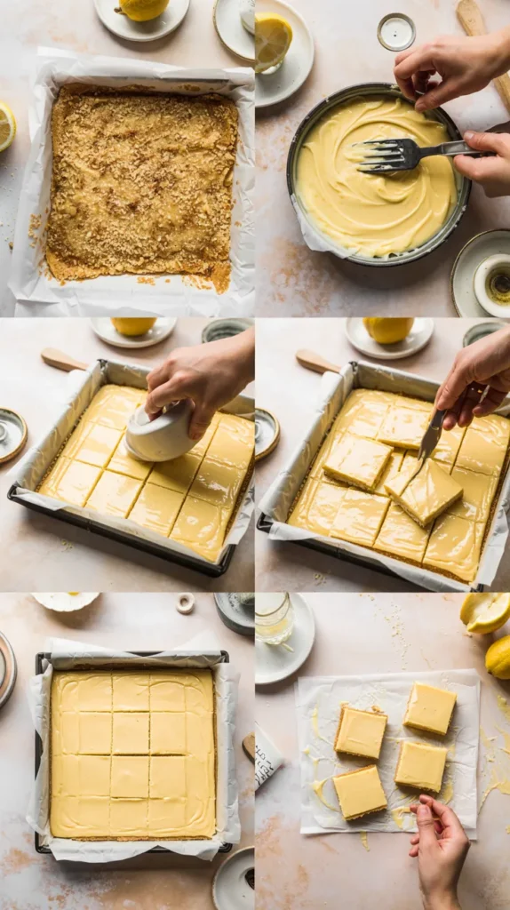 Gently fold the whipped cream into the lemon mixture. Don’t rush this keeps things light and creamy. Spread it evenly over the chilled crust. - Chill like a pro.