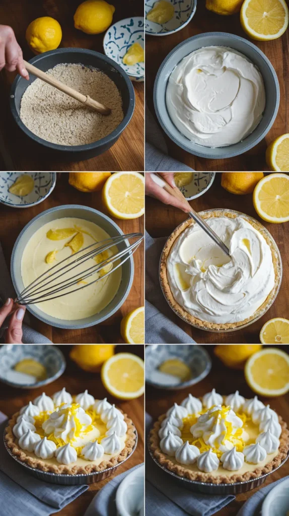 Carefully fold the whipped cream into the lemon mixture. Do not attack it. Slow, gentle folds keep the filling light and airy instead of sad and deflated. - Assemble the pie.