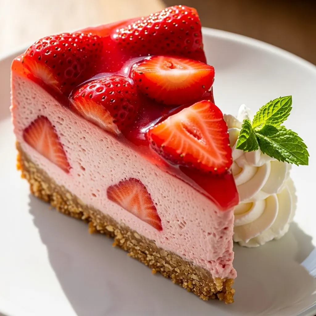 Serve the cheesecake chilled, topped with fresh strawberries, sugar-free whipped cream, or a strawberry puree. Slice carefully with a hot knife for clean, professional-looking pieces. This cheesecake is perfect for celebrations or a decadent treat any day.