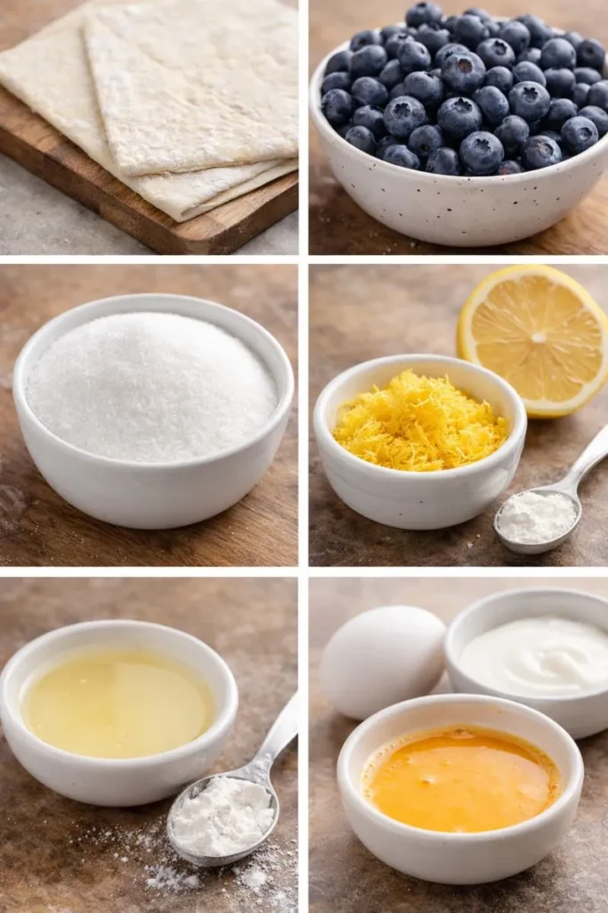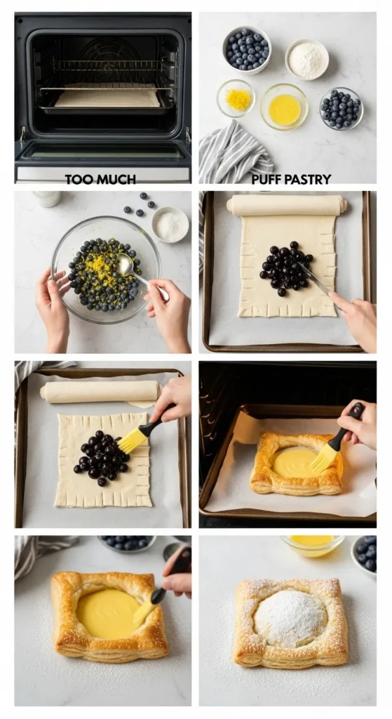 In a bowl, toss blueberries with sugar, lemon zest, lemon juice, and cornstarch. Stir gently so you don’t crush the berries into submission. Set it aside and let the flavors mingle. - Unroll the puff pastry.