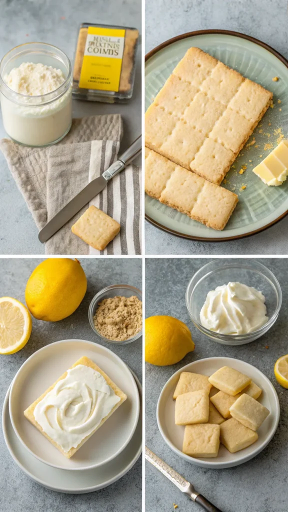 - 4-5 Shortbread Cookies (or Graham Crackers): Crushed fine. Shortbread provides a buttery, “melt-away” base that pairs perfectly with lemon.
