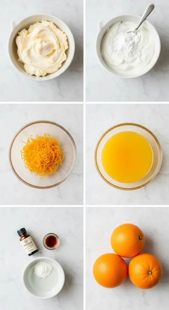 Mix in powdered sugar, orange zest, orange juice, and vanilla. Scrape the bowl. Mix again. Taste it. Smile. Adjust sugar if needed. - Whip the cream.