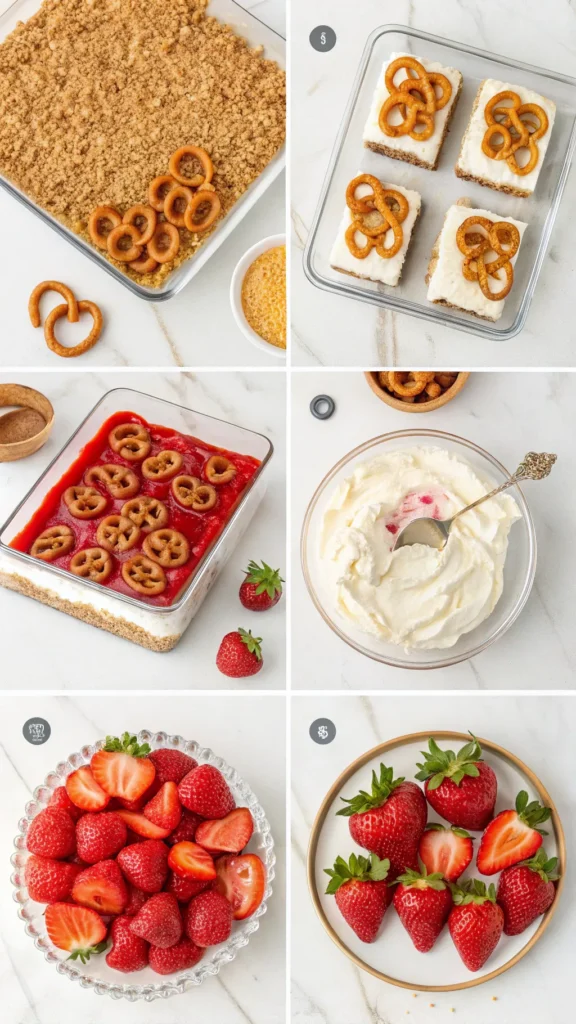 Let’s be real, some desserts try too hard. This one doesn’t. It wins because it understands balance. Salty pretzels, creamy filling, and sweet strawberry topping all play nice together instead of fighting for attention. I love this recipe because it feels effortless but tastes intentional. You don’t need advanced skills or fancy tools. You just need patience, because rushing this dessert always ends badly. Ever sliced it too early and watched it slide apart? Yeah… been there :/
