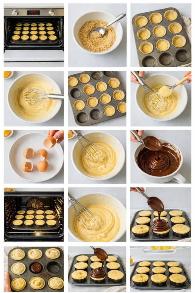 - Preheat your oven to 170°C (340°F) and line a muffin tin with cupcake liners. Yes, preheating matters. Always.