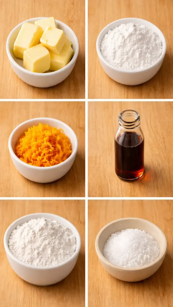 First of all, it’s shortbread. That means no eggs, no drama, no nonsense. Just butter, sugar, flour, and a bright pop of orange. Minimal ingredients. Maximum payoff. Second, it’s ridiculously easy. If you can stir things in a bowl without launching flour into orbit, you can make these. It’s basically mix → chill → slice → bake. That’s it. Third, they look fancy. That subtle orange aroma? Chef’s kiss. The delicate crumb? Very “I have my life together,” even if you absolutely do not. And finally, they’re flexible. Afternoon tea? Perfect. Midnight snack? Also perfect. Impressing your in-laws? Risky move, but this helps.