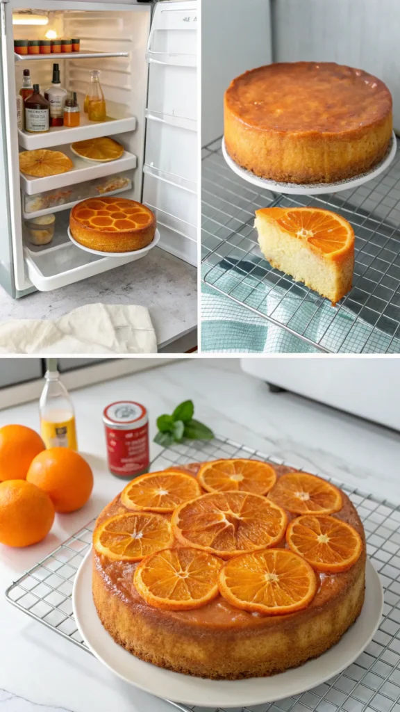 Store orange upside down cake in an airtight container at room temperature for up to two days. Refrigeration extends freshness but can firm up the texture. Let chilled slices come to room temperature before serving. The flavors actually deepen slightly after the first day.