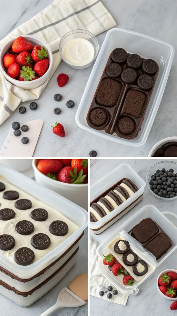 This cake is easy to customize. Swap vanilla Oreos for chocolate, mint, or birthday cake flavors. Add layers of sliced bananas, strawberries, or chocolate chips between Oreos for extra indulgence. For a richer dessert, drizzle caramel or chocolate fudge over the top or fold cocoa powder into the whipped cream for a chocolatey twist. The options are endless while keeping the base simple.