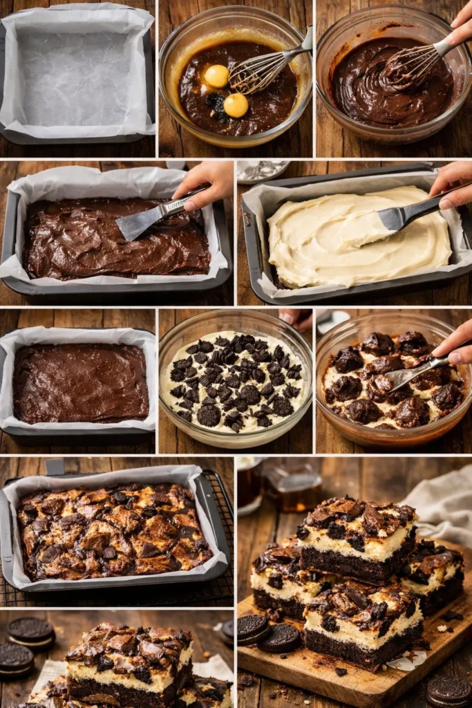 First of all, it’s three desserts pretending to be one, which feels illegal but delicious. Brownies? Check. Cheesecake? Check. Oreos? Obviously.