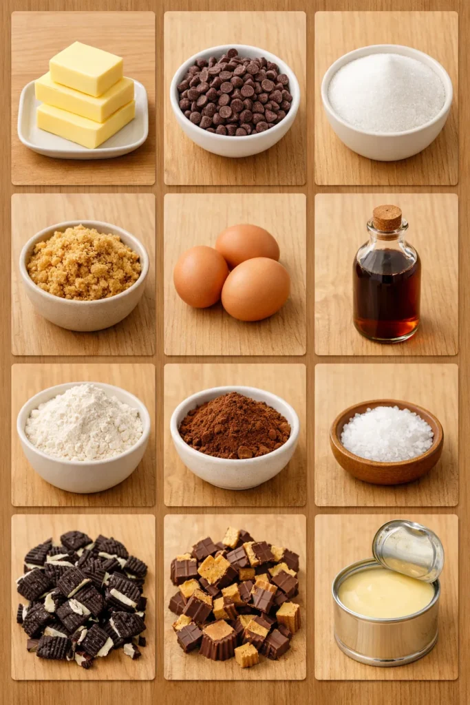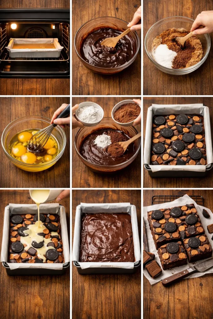 First of all, it’s basically three iconic snacks having a party and you’re invited. Brownies? Classic. Oreos? Legends. Reese’s? Emotional support candy. Put them together and suddenly you’re not just baking you’re making a statement.