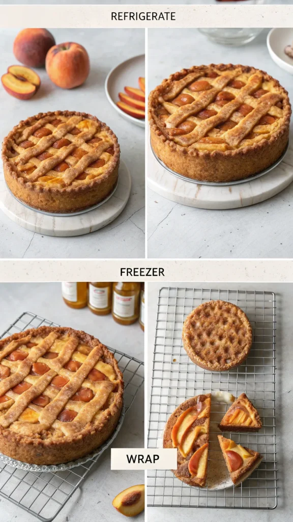 This cake works best when served slightly warm or at room temperature. It’s perfect for breakfast tables, brunch spreads, or casual gatherings. Serve it plain, dusted with powdered sugar, or alongside fresh peach slices for a simple presentation. No frosting needed, which honestly makes life easier.