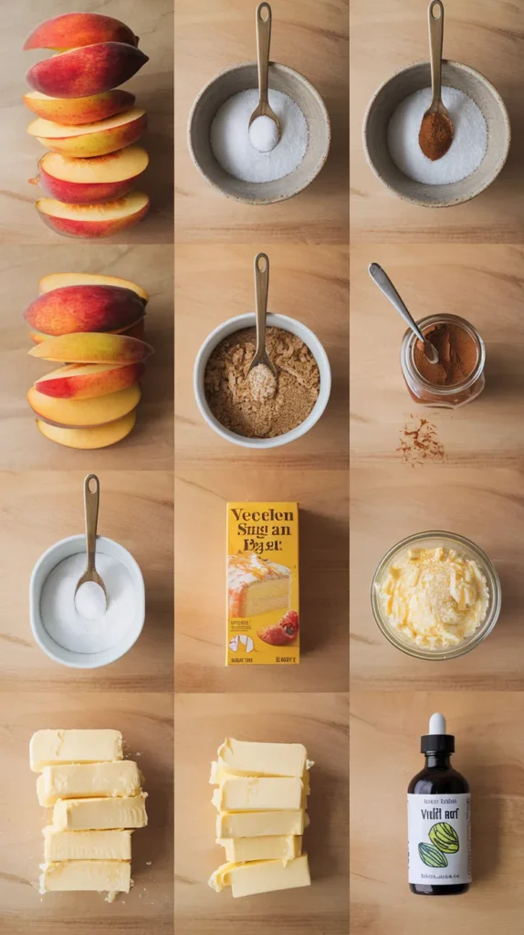 - Granulated sugar (½–¾ cup) – Depends on how sweet your peaches are and how sweet you are.