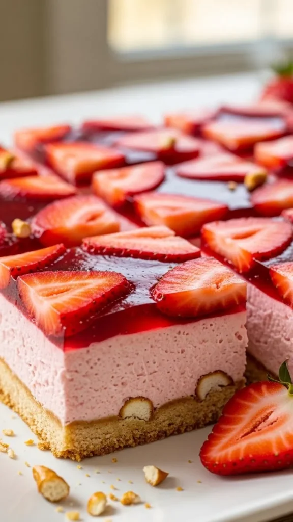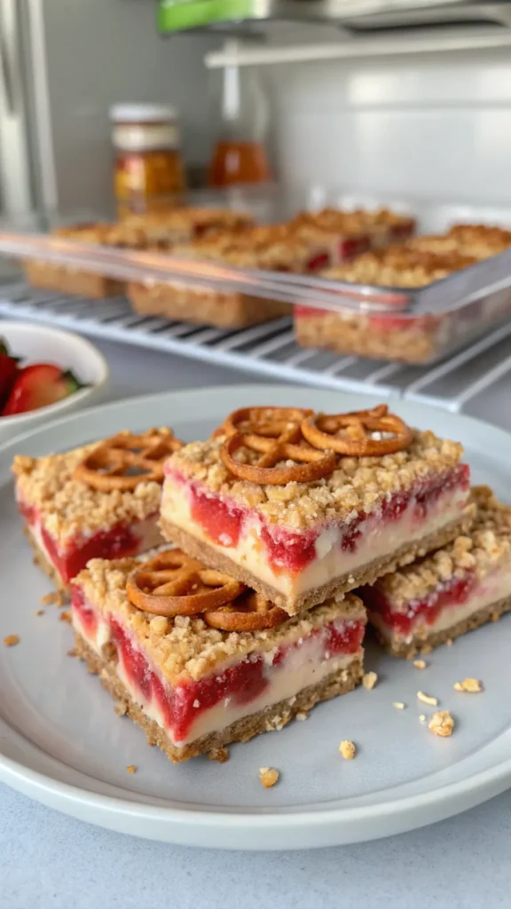 - Strawberry pretzel bars feel lighter and brighter
