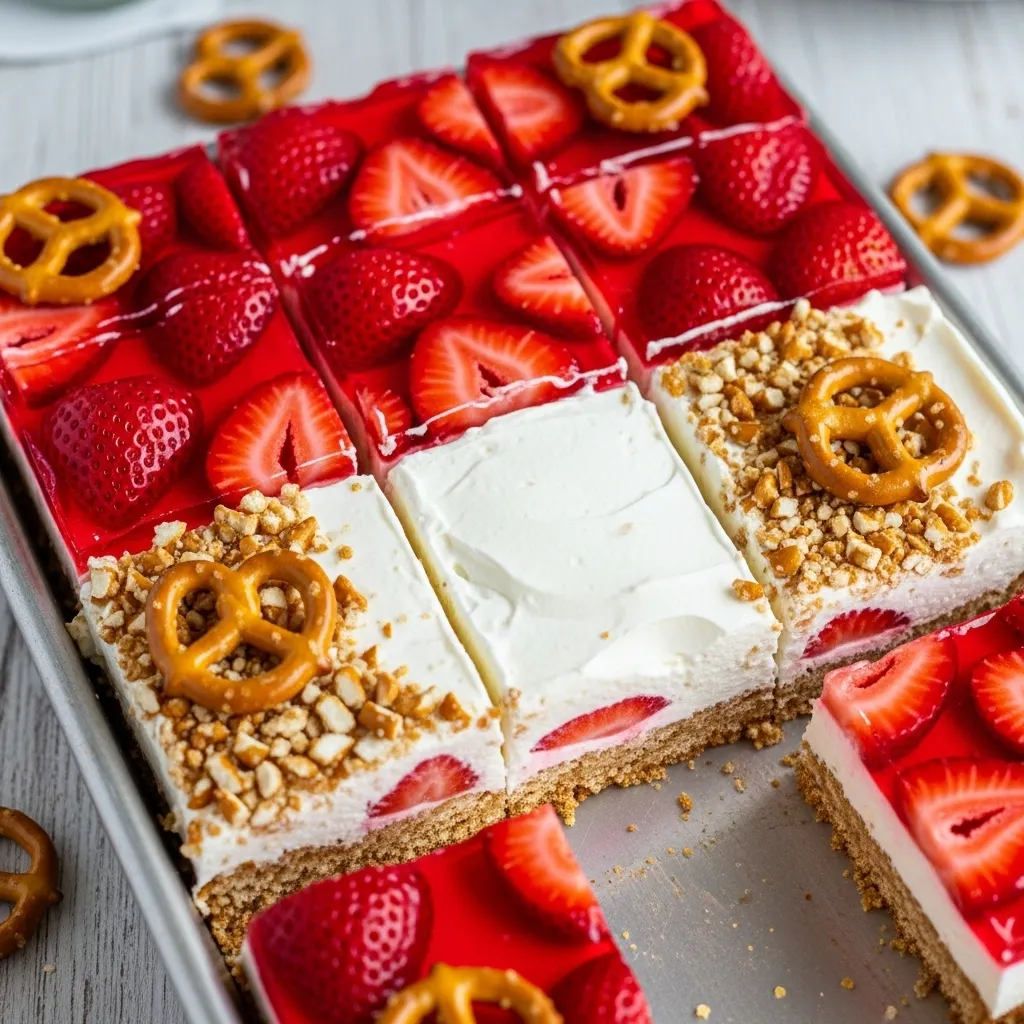 - Strawberry pretzel bars feel lighter and brighter