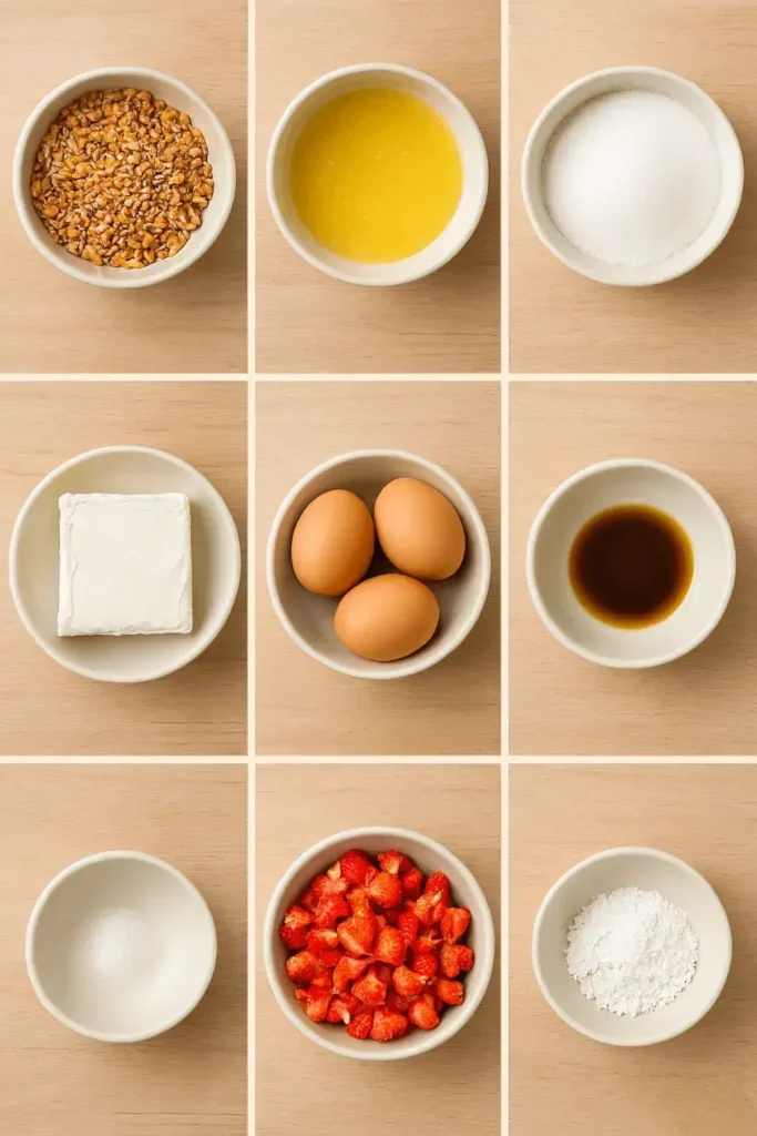 - Strawberry topping: While bars cool, toss strawberries with sugar (and cornstarch if using). Let sit 10 minutes to release juices. Cook on low heat for 3–5 minutes if you like it jammy. Otherwise, raw is fine fresh vibes!
