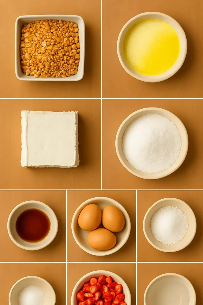 - Bake: Bake for 25–30 minutes. Edges should be set, center a little jiggly don’t overbake, or your bars turn rubbery. We’re going for soft, dreamy cheesecake vibes.