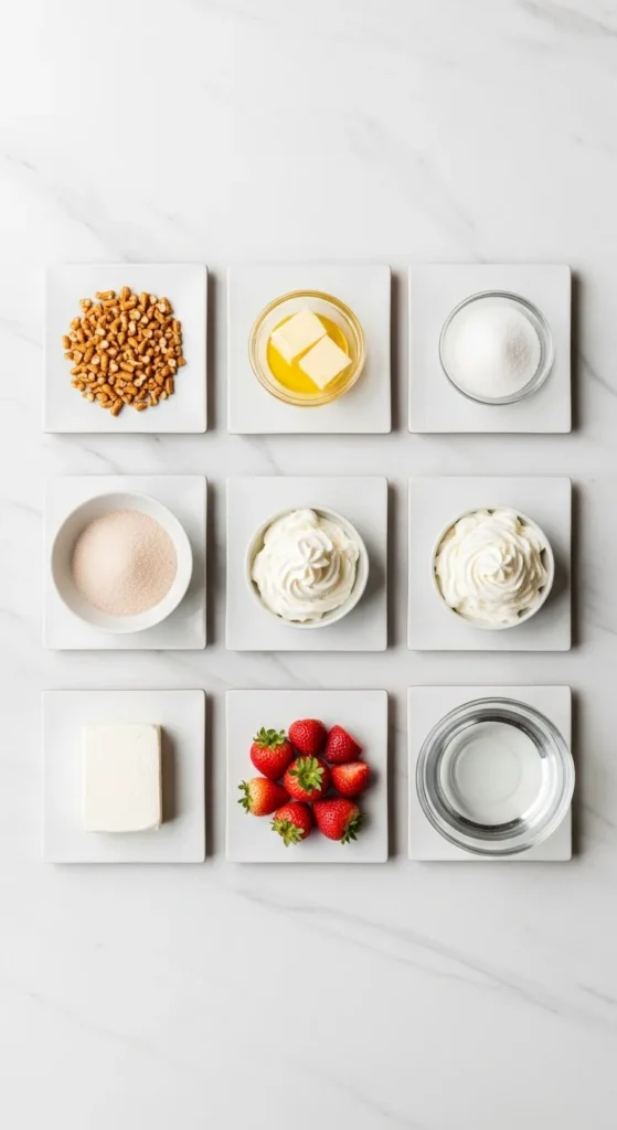 First of all, it’s basically three layers of happiness. Crunchy pretzel crust. Creamy, fluffy middle. Bright strawberry Jell-O top. It’s like dessert decided to multitask. Second, it’s ridiculously easy. If you can crush pretzels and stir things in a bowl, you’re qualified. No fancy techniques. No dramatic oven moments. No “why is this separating?” panic. Third, it tastes like summer in a 9×13 pan. Sweet strawberries, salty pretzels, cool whipped topping every bite hits different. The salty-sweet combo? Chef’s kiss. And finally? It’s a crowd-pleaser. Kids love it. Adults love it. Even that one picky cousin who “doesn’t like desserts that are too sweet” will quietly grab another slice.