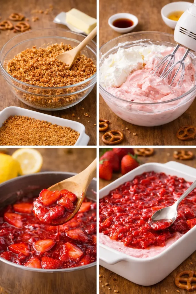 So you want a dessert that’s salty, sweet, creamy, crunchy, and basically the Beyoncé of potluck tables? Same. Let me introduce you to Strawberry Pretzel Ice Cream Cake the dessert that confuses people in the best way possible. Pretzels in cake? Ice cream in layers? Yes. Trust the process.