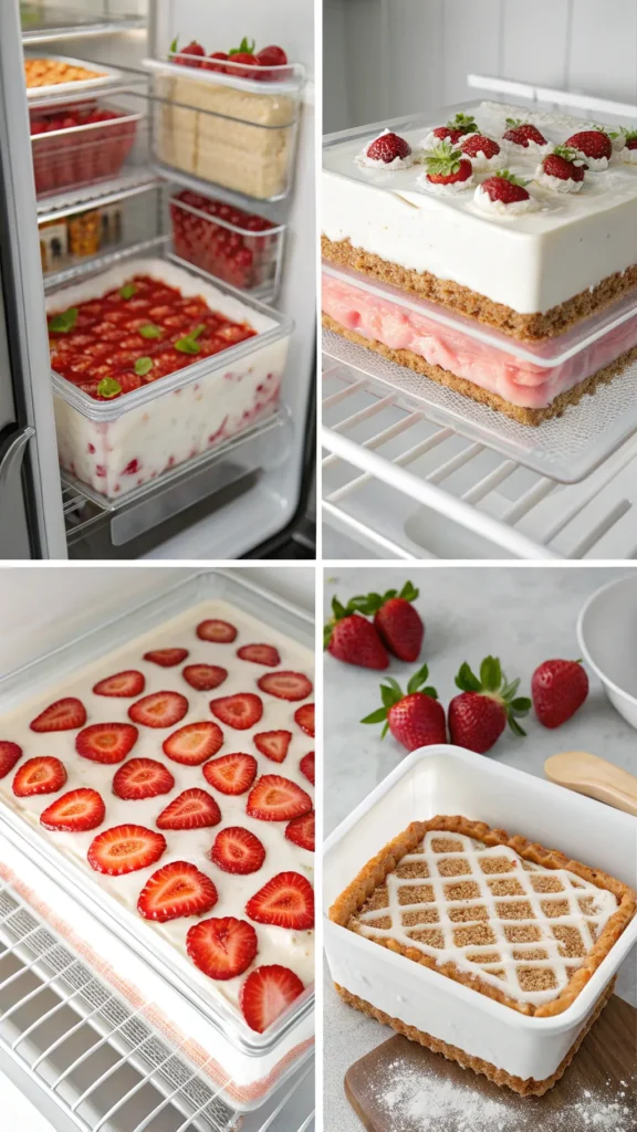 Strawberry pretzel icebox dessert loves the fridge. Chilling improves texture and flavor at the same time. I usually make it a day ahead. It stores well, which makes planning easier and stress-free. Pro tip: let it sit out for a few minutes before serving so slicing feels easier 🙂