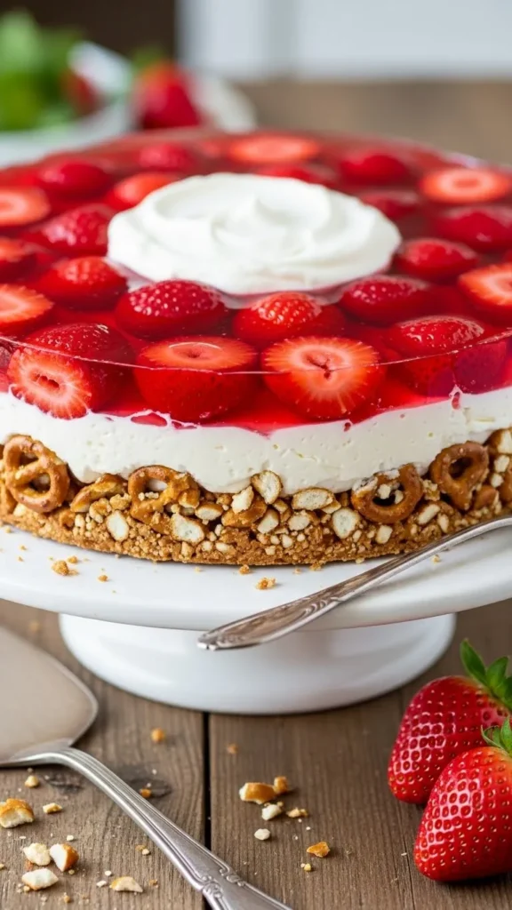 Strawberry pretzel pie proves that contrast creates magic. Salty crunch, creamy filling, and fruity brightness come together without trying too hard. Every layer plays its role, and nothing feels extra. If you want a dessert that feels nostalgic, refreshing, and reliably good, this pie deserves a permanent spot in your rotation. Make it once, and don’t be surprised if people start asking for it by name.