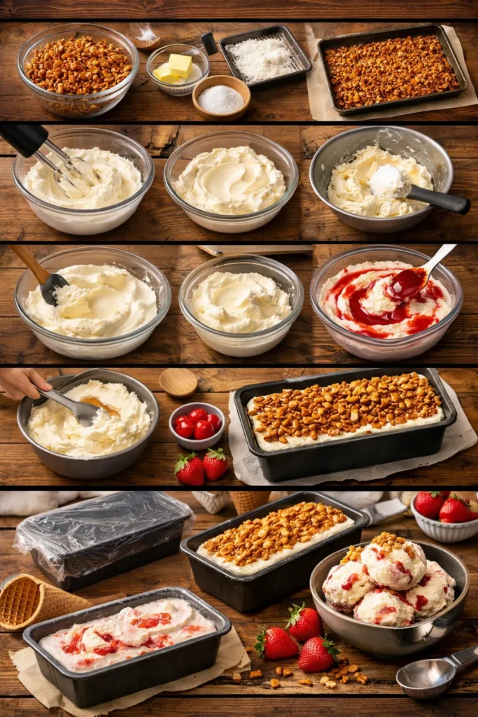 Spread the mixture on a baking sheet and bake at 350°F (175°C) for about 8–10 minutes. Let it cool completely. If it’s warm, it’ll melt your ice cream base. Patience, my friend.