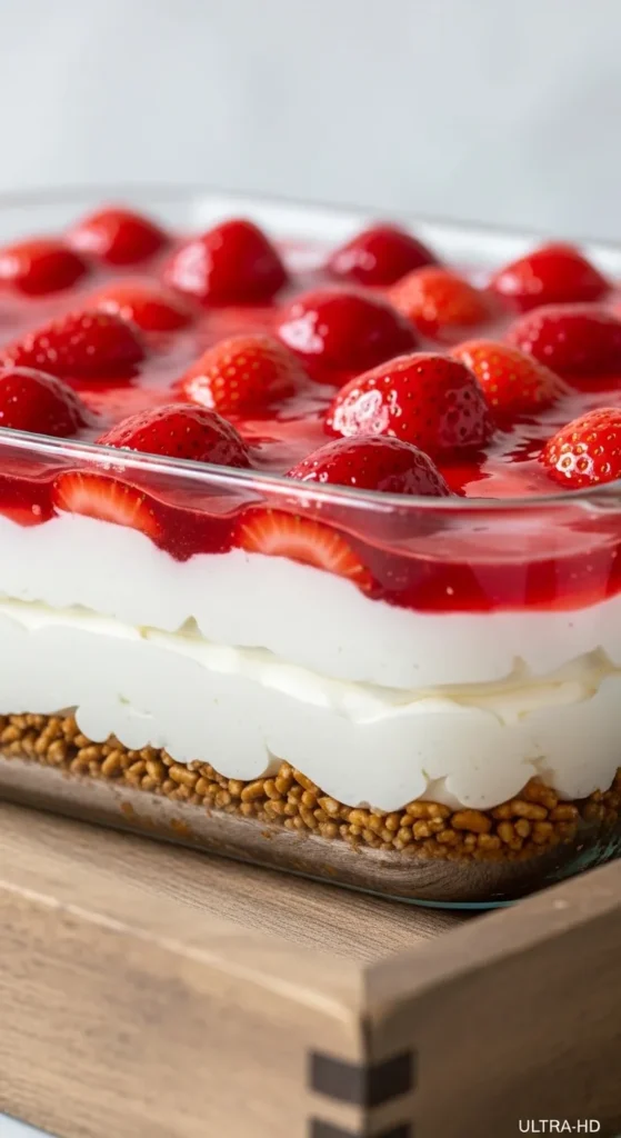 First of all, it’s the perfect sweet-and-salty combo. That buttery pretzel crust? Chef’s kiss. The creamy middle layer? Smooth enough to make you emotional. The strawberry topping? Bright, fresh, and dramatic in the best way. Second, it’s ridiculously easy. No complicated techniques. No culinary degree required. If you can stir, press, and spread, you’re qualified. Third, it’s a crowd-pleaser. Bring this to a family gathering and watch people suddenly become very generous with compliments. “Who made this?” Oh, that would be you. And finally it’s flexible. You can tweak it, shortcut it, fancy it up, or keep it classic. It forgives mistakes. Honestly, it’s more forgiving than most people.