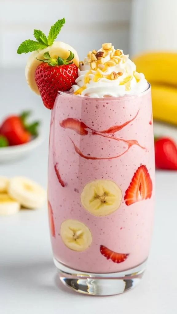 This smoothie tastes like something you’d overpay for at a café, except you made it in pajamas. The banana adds creaminess while strawberries bring that fresh, slightly tangy balance. It works as a quick breakfast, a post-workout snack, or a late-night “I want something sweet but not cake” moment.